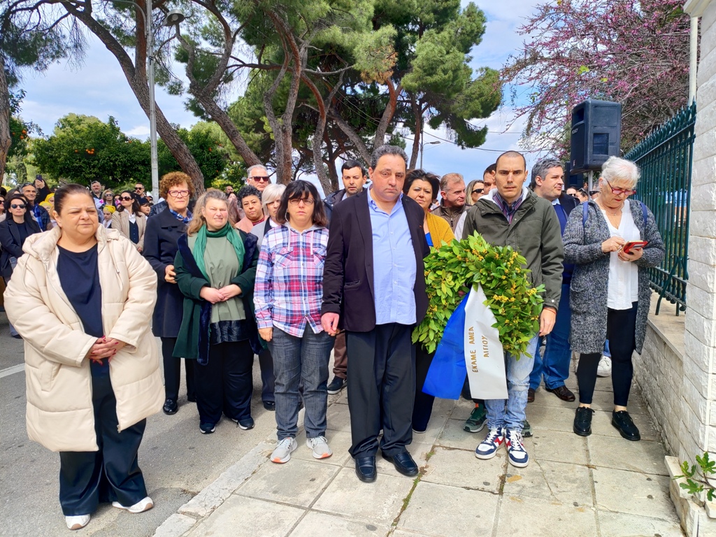 Την Τρίτη 24 Μαρτίου 2026 οι ωφελούμενοι του Ε.Κ.Α.ΜΕ./ΑμεΑ Αιγίου, συνοδευόμενοι από τους εκπαιδευτές τους και μέλη του Διοικητικού Συμβουλίου, παρευρέθησαν στα Ψηλαλώνια για να παρακολουθήσουν την τελετή κατάθεσης στεφανιών.