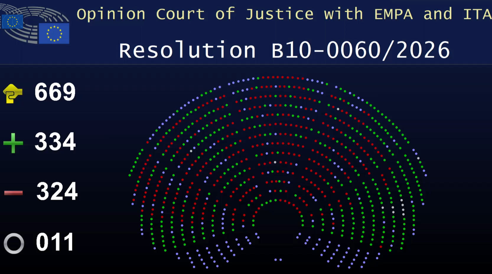 Με οριακή πλειοψηφία μόλις 10 ψήφων, οι ευρωβουλευτές ενέκριναν ψήφισμα για την υποβολή αιτήματος γνωμοδότησης από το Δικαστήριο της Ευρωπαϊκής Ένωσης σχετικά με το εάν τα κείμενα της συμφωνίας ΕΕ–Mercosur συμμορφώνονται με τις Συνθήκες της ΕΕ.