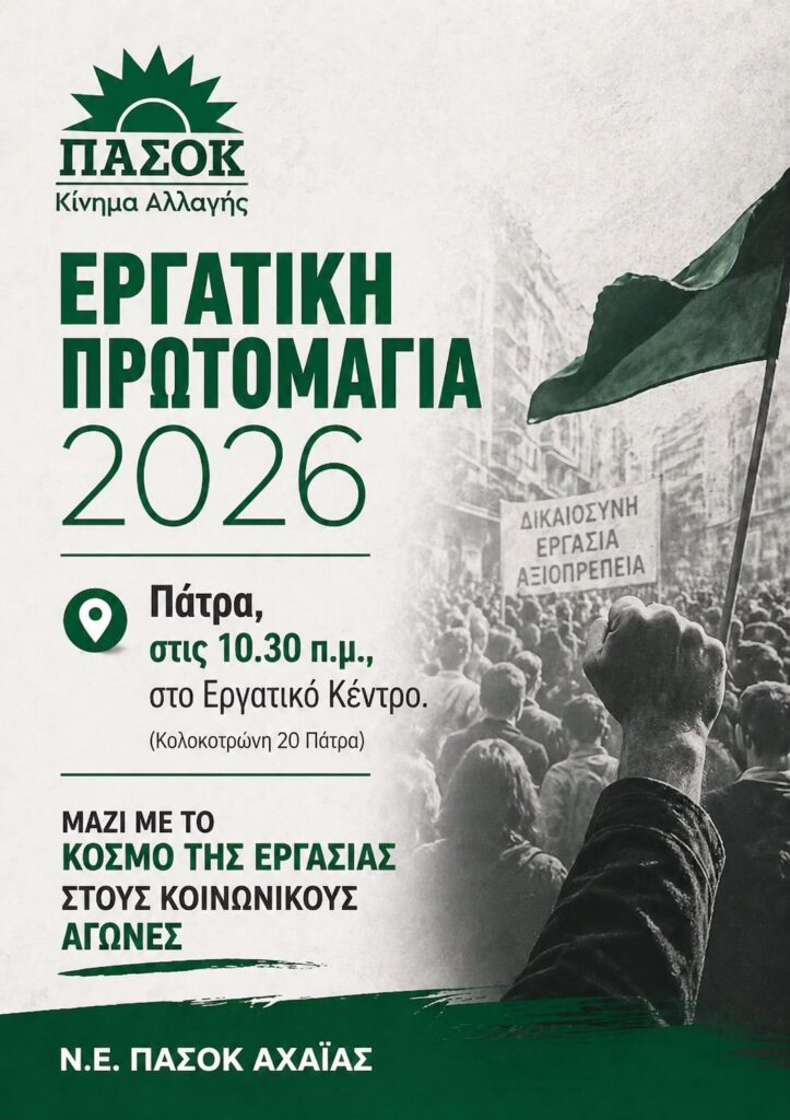 Η Νομαρχιακή Επιτροπή ΠΑΣΟΚ Αχαΐας καλεί τους πολίτες να συμμετάσχουν μαζικά στη συγκέντρωση της Πρωτομαγιάς, στο Εργατικό Κέντρο Πάτρας,