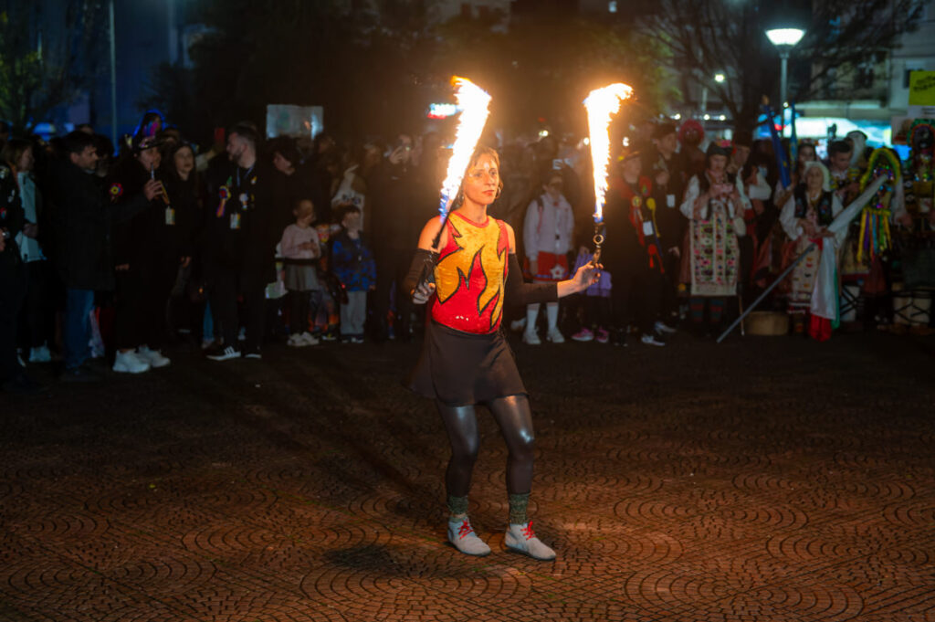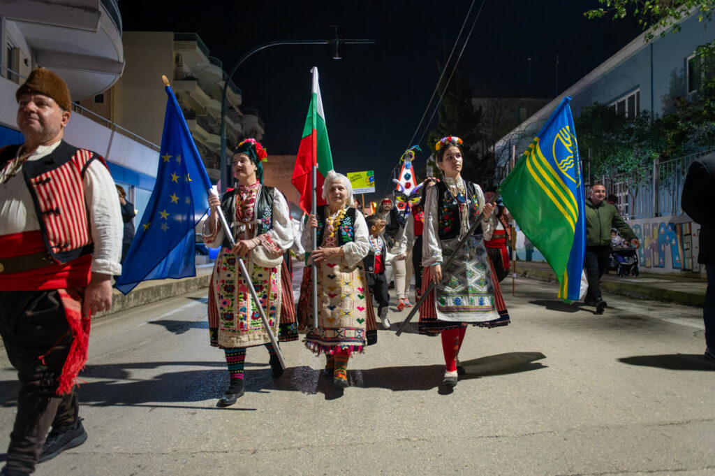 Οι Kukeri από το χωριό Καμπίλε της Βουλγαρίας, μασκαρεμένοι χορευτές που αναπαριστούν ένα πανάρχαιο λαϊκό έθιμο της Βουλγαρίας αλλά και όλων των Βαλκανίων, σε μια ξεχωριστή εμφάνιση που κέρδισε τις εντυπώσεις, με τις εντυπωσιακές μάσκες, βαριές φορεσιές και κουδούνια, κινούμενοι ρυθμικά απέδωσαν έναν τελετουργικό συμβολισμό που συνδέεται με το ξόρκισμα του κακού, την κυριαρχία του καλού και τις ευχές για υγεία, γονιμότητα και ευημερία.