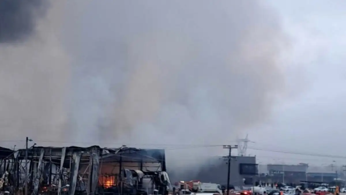 Οι εικόνες από το σημείο ανατριχιαστικές. Ισχυρές πυροσβεστικές δυνάμεις δίνουν μάχη με τις φλόγες ενώ το επιβλητικό κτίριο των πολλων τετραγωνικών, έχει κοπεί στα δύο από την έκρηξη με την καταστροφή του από τις φλόγες να είναι ολοκληρωτική.