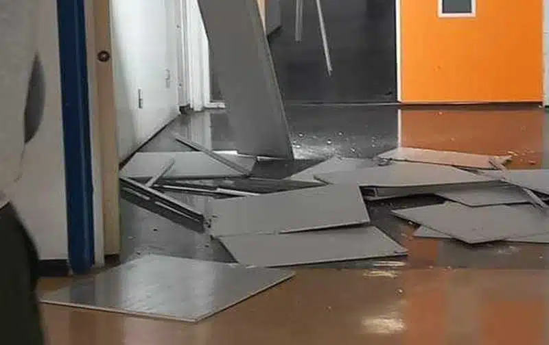 Ο κ. Καρβέλης δέχτηκε αντικείμενο από την οροφή στο πόδι ενώ επιθεωρούσε την βλάβη πτώσης οροφής στην Μαιευτική Κλινική