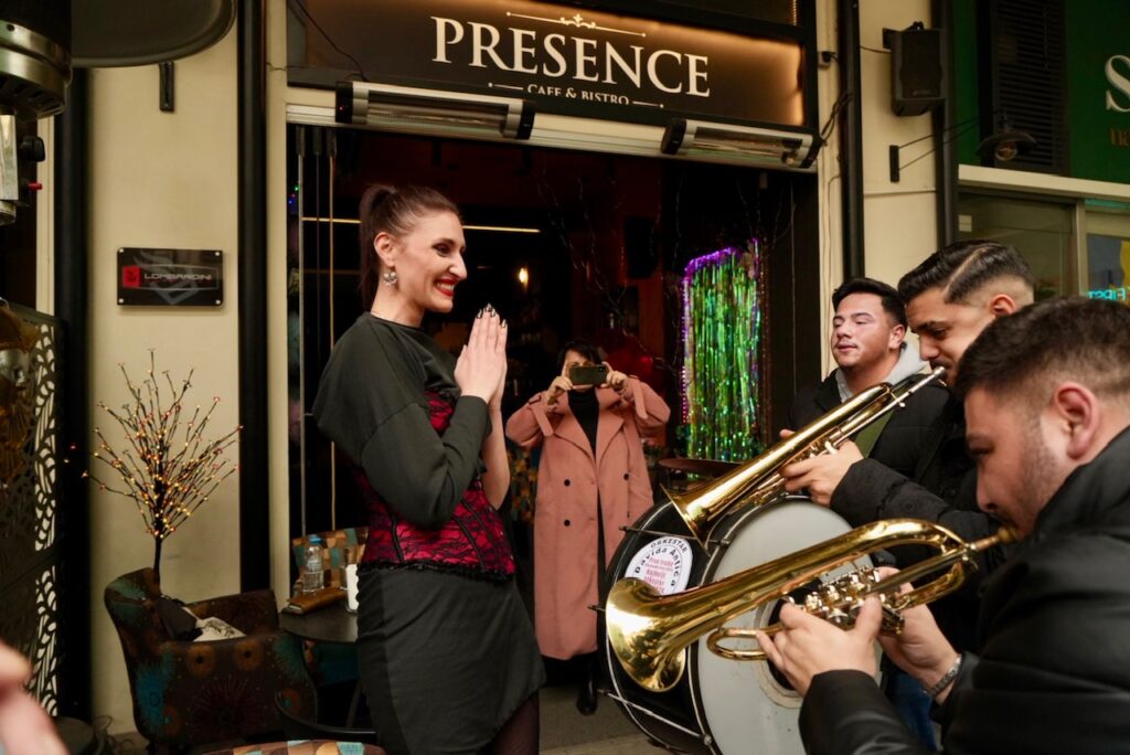 Τα βαλκανικά ηχοχρώματα όμως δεν έπαυσαν εδώ αφού στη συνέχεια η οχταμελής Orkestar Davida Antica επί ποδός έκανε πάταγο στο κέντρο της Πάτρας και τα μέλη της αναμείχτηκαν με τον κόσμο που είχε κατέβει στους δρόμους. Οι μουσικοί με τα χάλκινα πνευστά και τα κρουστά τους μπλέχτηκαν στους πολυσύχναστους πεζόδρομους Μαιζώνος, Ρήγα Φεραίου, Ρήγα Φεραίου, Γεροκωστοπούλου κάνοντας συνεχώς στάσεις στην πορεία τους, μπαίνοντας και σε καταστήματα μέσα και στήνοντας παντού εστίες διονυσιακού γλεντιού. Το κέντρο πήρε φωτιά με βαλκανικούς ρυθμούς και καθ΄ οδόν στήνονταν συνθήκες πανηγυριού και ξεφαντώματος. Η σπουδαία μπάντα δικαιολόγησε πλήρως τη διεθνή φήμη που έχει και αποδείχτηκε ότι ταίριαζε απολύτως με τον παραδοσιακό χαρακτήρα της γιορτής της Τσικνοπέμπτης.