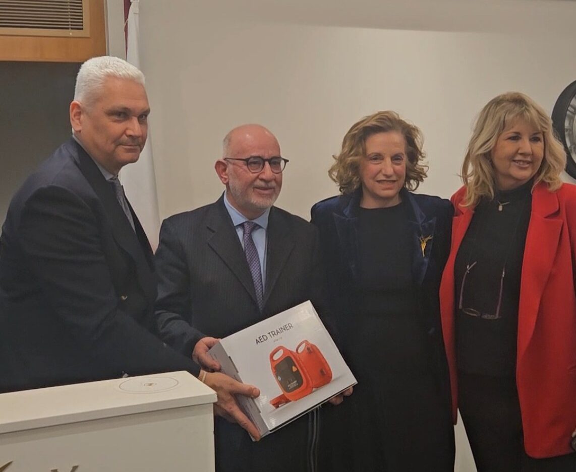 Τον εκπαιδευτικό απινιδωτή προσέφερε ο κ. Ζαΐμης μαζί με τον Αντιπεριφερειάρχη Τουριστικής Ανάπτυξης Παναγιώτη Σακελλαρόπουλο και την Αντιπεριφερειάρχη Δημόσιας Υγείας Άννα Μαστοράκου.